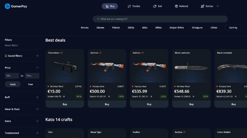 GamerPay ist besonders stark für Nutzer, die ohne viel Aufwand Skins kaufen möchten. Die Plattform ist leicht verständlich und verzichtet auf unnötig komplizierte Prozesse.